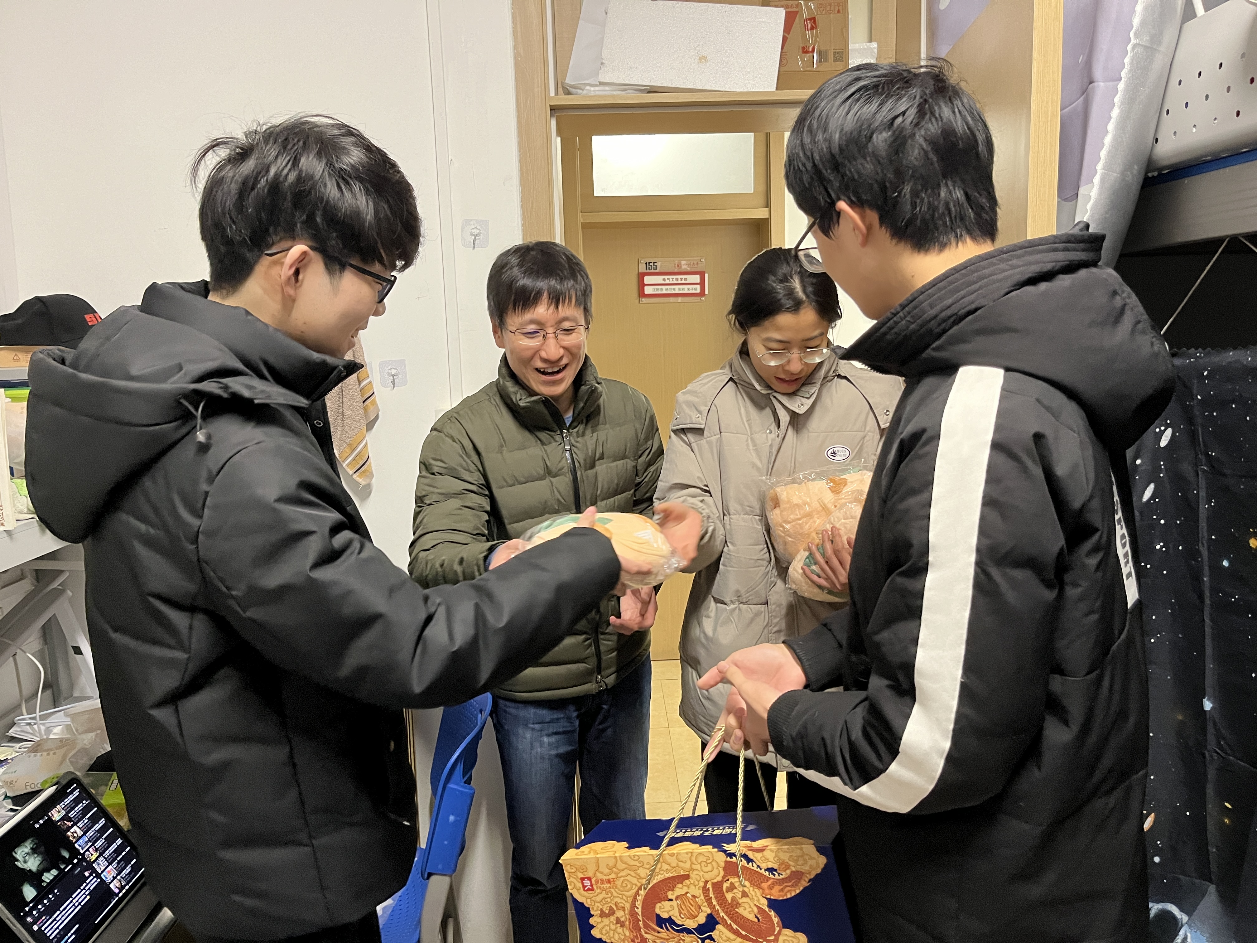 赵书记、戴书记和辅导员老师们在学院会议室为部分留校研究生代表发放了新春慰问礼包。赵书记仔细询问了同学们留校期间的学习和生活安排,叮嘱大家注意安全,经常与导师联系交流,在认真完成科研工作的同时,注重劳逸结合、身心健康。