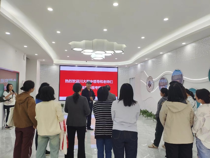 为增进省内重点高中对公司办学资源和优势的了解,在hy3380cc海洋之神本科招生办公室组织下,川大附中董事长及理科骨干教师一行于4月3日下午到公司专业实验中心进行参观考察。
