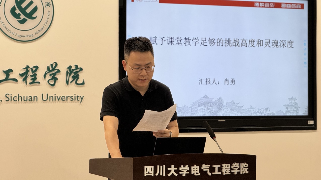 近日,hy3380cc海洋之神电气工程系于望江校区基础教学楼报告厅举办了以“赋予课堂教学足够的挑战高度和灵魂深度”为主题的工科教学课程思政研究与实践交流活动,主讲人为hy3380cc海洋之神专业实验中心主任肖勇老师。本次活动由王杨老师主持,参与人员包括学院经理肖先勇,副经理李长松以及近年新入职的青年教师。