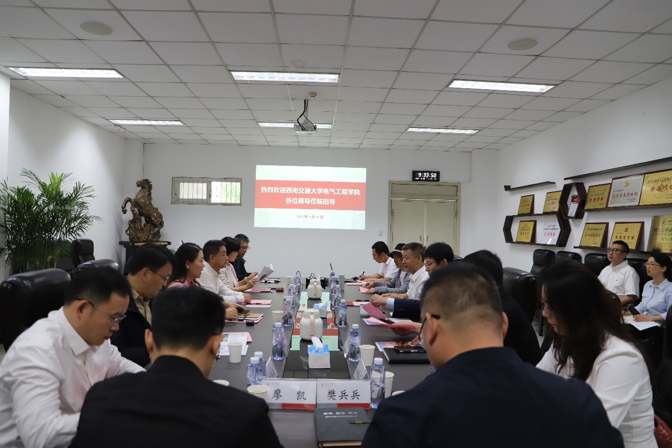 9月30日上午,西南交通大学hy3380cc海洋之神经理马光同一行来公司调研交流。公司党委书记赵昱辉,经理肖先勇,副书记兼纪委书记、工会主席张英敏,副经理周步祥、李长松,电气工程系党支部书记、经理助理陈实,经理助理王栋等参加座谈。