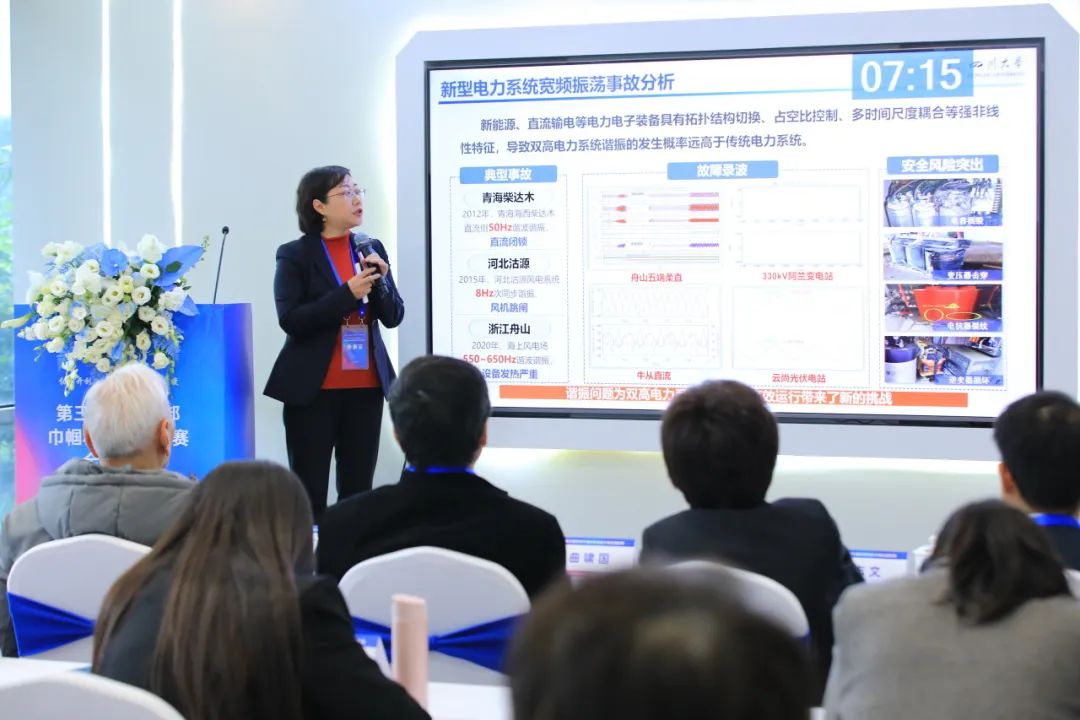 本次大赛公司王渝红教授的参赛项目名称为《广域高比例新能源电力系统宽频振荡智能风险辨识及定位系统》。项目针对高比例新能源与电力系统间宽频振荡的检测、分析及防控问题,融合人工智能技术与工程机理手段,提出了广域系统宽频振荡智能监测数据修复和量测装置配置优化方法,构建了融合物理机制的宽频振荡智能风险量化评估架构,设计了基于神经压缩感知技术的扰动源分层定位系统。