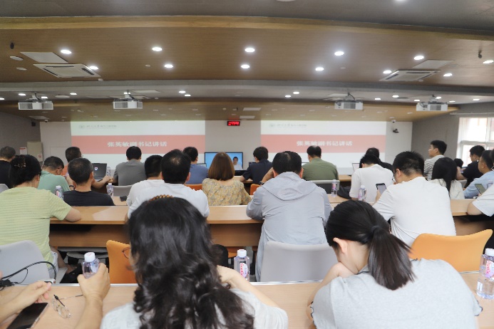 公司党委副书记兼纪委书记、工会主席张英敏以“落实中央八项规定精神 以优良作风推进学院高质量发展”为题,从主题教育工作进展、以案为鉴警示教育、凝聚共识担当使命三个方面,总结了学院扎实推进主题教育的情况,进一步强调要持续巩固深化主题教育成果,持续加强作风建设,为加快推进学院高质量内涵式发展提供更加坚强有力的保障。