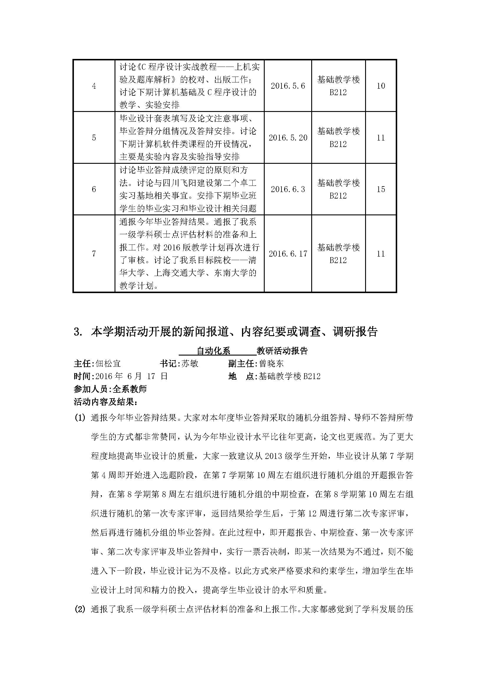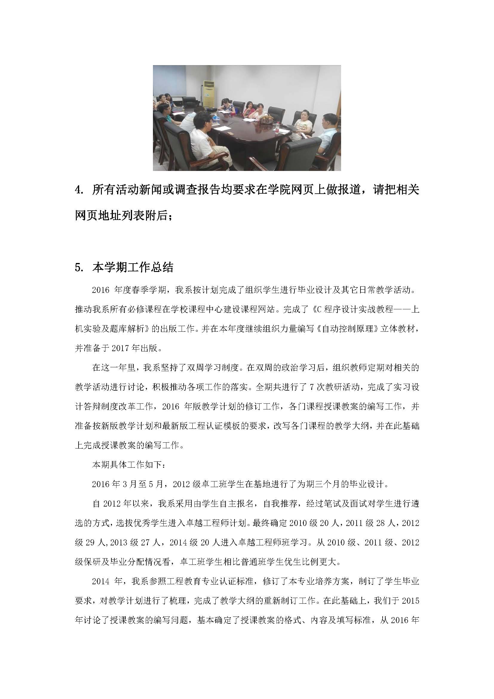 自动化2016年(春季学期)教学活动简报