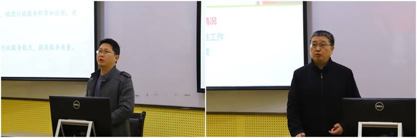 李成鑫副经理就学院行政工作助力“十四五”发展发言。他指出,为高质量人才培养服好务,要提升行政服务水平,提质增效、追求卓越,充分调动员工资源和社会资源,从而激活人才培养动能,服务学院人才培养。
