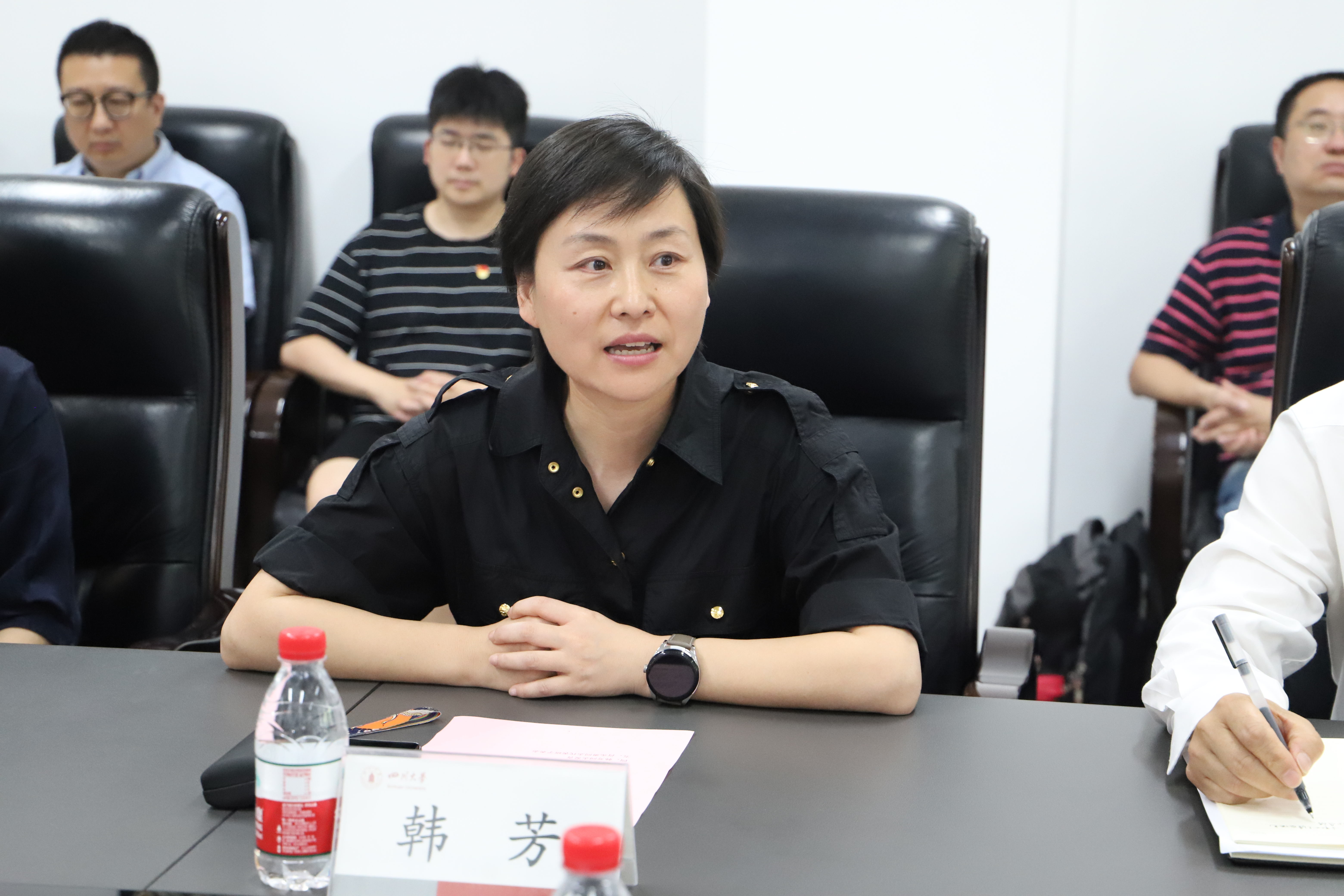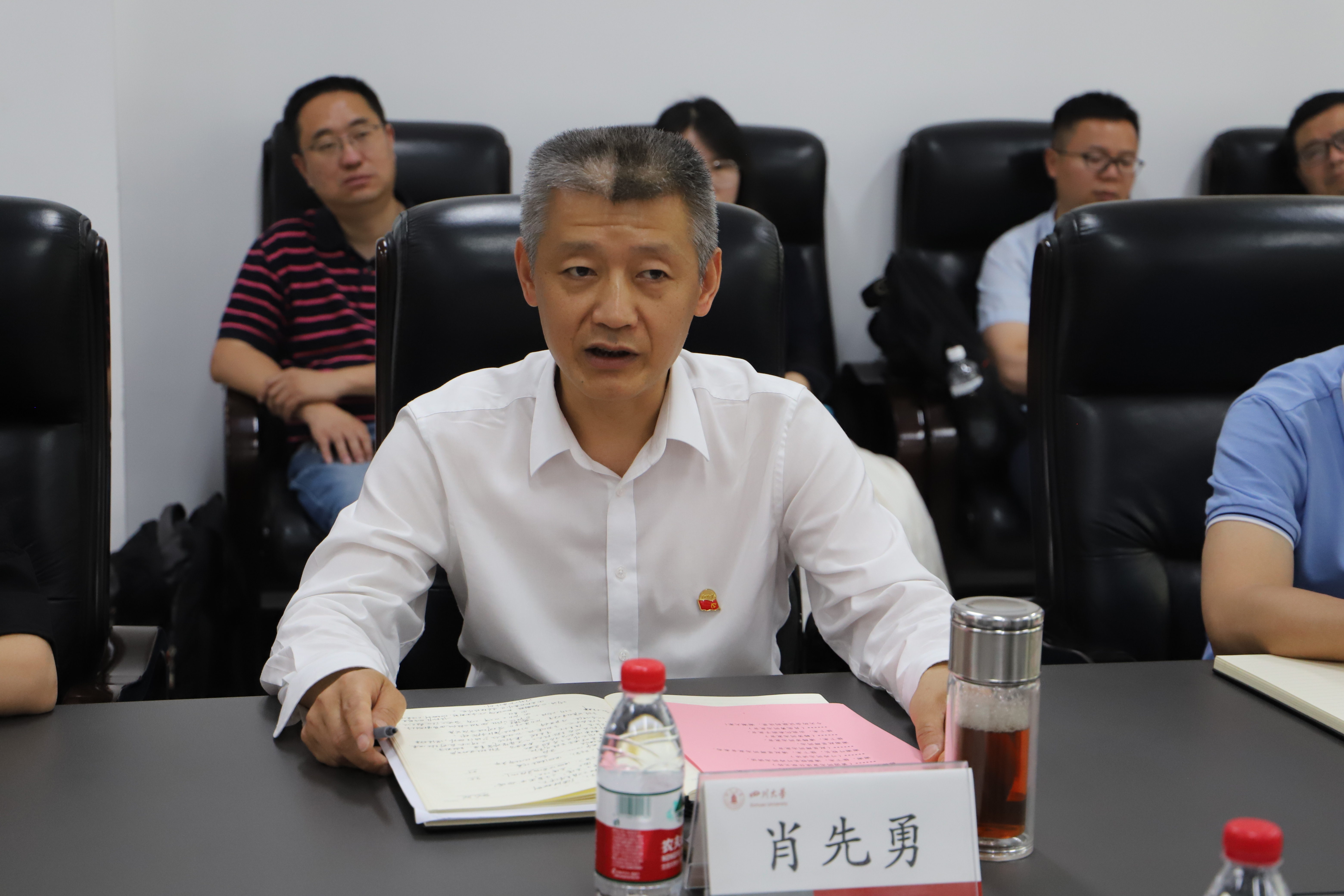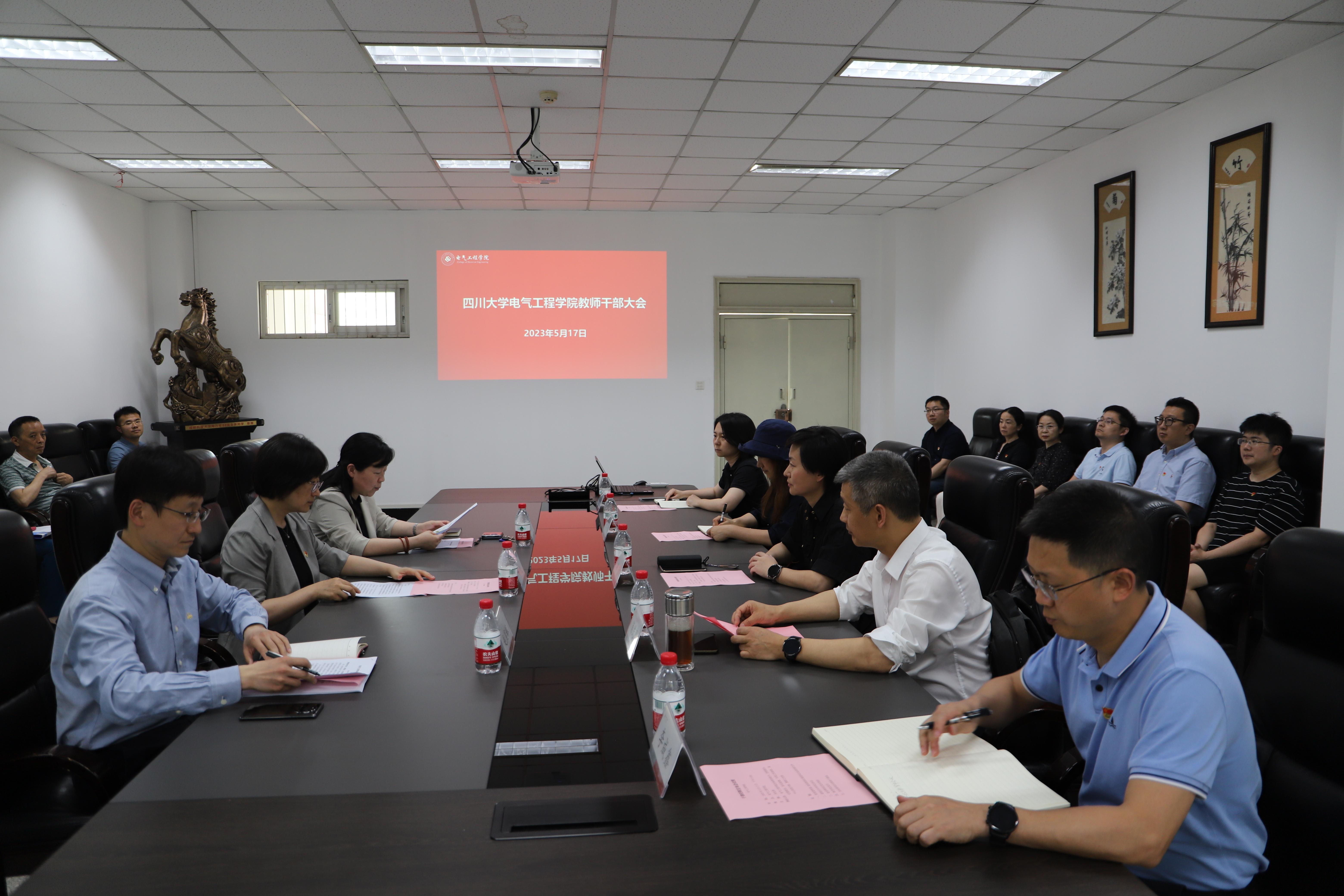 赵昱辉作表态发言。他表示完全拥护、坚决服从公司党委的决定。他说,新的岗位是新的责任,也是新的起点,将始终坚持初心使命,以习近平新时代中国特色社会主义思想为指导,不断增强“四个意识”、坚定“四个自信”、做到“两个维护”,努力推动公司党建工作与事业发展深度融合;始终坚持守正创新,坚持一流标准,树立世界眼光,尽快转变角色,尽快熟悉了解情况,一张蓝图绘到底,与班子成员一起走出一条具有川大风格、体现新工科特色的电气内涵式高质量发展之路;始终坚持弘扬优良作风,切实加强班子团结,凝聚广大师生力量,持续践行以员工发展、教师发展为中心的宗旨意识,持续发展风清气正的育人环境,持续发扬追求卓越、善作善成的精神状态。