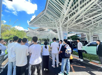 本次实践活动主要由参观介绍和交流讨论两部分构成。参观过程中,同学们在专家的细致介绍下了解到,成都特来电光储充放综合能源项目是成都特来电及成都高投联合打造的西部地区首个集碲化镉光伏发电、储能、液冷超充、公共快充、园区慢充、V2G(Vehicle-to-Grid)充放电于一体的智慧微网项目,堪称特来电各项新技术的集大成之作。该项目充分展现了四川地区相关行业领域内目前最先进、最前沿的技术。
