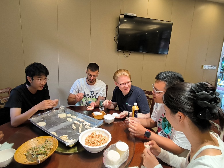 7月5日,一场温馨的包饺子活动在中德班员工与职工间温馨上演。中国员工耐心讲述着饺子的文化寓意,手把手教授职工们这一传统技艺。面团在指尖翻飞,饺子在盘中排列,欢声笑语中,中外员工的心紧紧相连。当热腾腾的饺子端上餐桌,那份成就感与满足感溢于言表,更成为了两国青年友谊的见证。