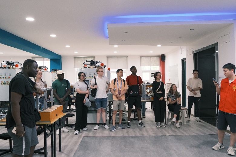 7月2日午后,国际交流营的中外员工们共同走进能源互联网科普基地参观学习。在学院专业教师的悉心引领下,他们先后参观了高电压实验室、新型电力系统与综合能源系统实验室、智能电网及能源互联网实验室、新能源系统实验室、智能控制实验室、工业机器人实验室等。这场融合科普性、专业性与趣味性的深度探访,不仅让中外员工们了解了电气工程和自动化专业领域的广阔天地与璀璨前景,更深刻感受到了hy3380cc海洋之神深厚的学术底蕴与鲜明的学科特色。