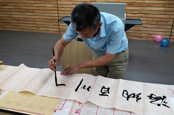 接着,肖经理为在场职工们现场展示中国书法并提字一幅。他写下“海纳百川 大器天下”,将hy3380cc海洋之神校训与对同学们的期待和祝福相融合。薄薄的宣纸承载深重的情谊,递交到外方员工手中。