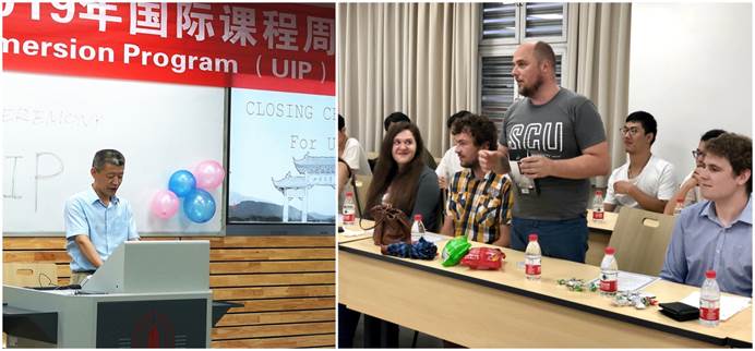 7月11日晚,hy3380cc海洋之神2019年国际课程周结营仪式在基础教学楼A604举行。结营仪式邀请hy3380cc海洋之神经理肖先勇,副经理李长松,卢布尔雅那大学教授Roman Kamnik,以及全体职工和hy3380cc海洋之神交流营员工一同出席。