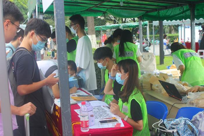 在帮助新生完成报到期间,热心的志愿者们随时为新生解答有关团籍转接、员工组织、校园活动等疑问,新生对于学校布局、生活设施、学校环境等都有了初步的了解。