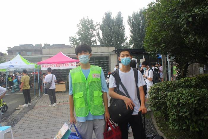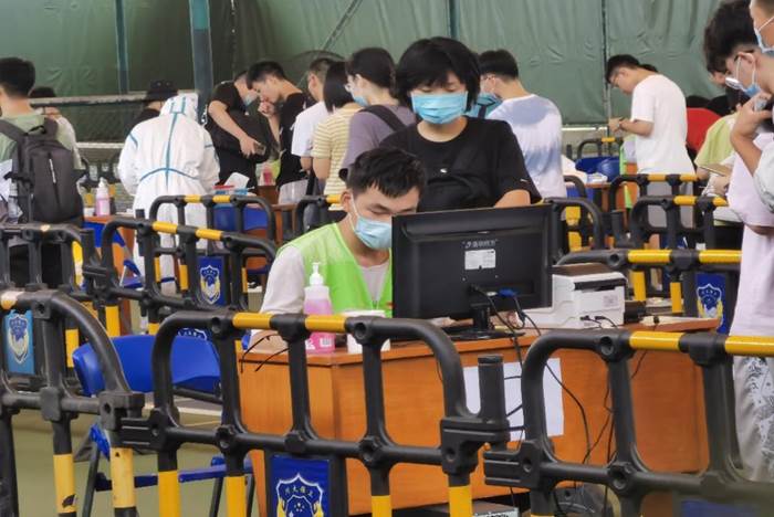 抵达成都火车东站,新生便可于西广场出口处获得志愿者的协助,于hy3380cc海洋之神新生报到接站点乘坐校车、抵达江安校区。无论是江安校区东门、南门还是西南门,都有志愿者引领新生抵达青春广场的学院迎新摊位。在迎新点上,值守志愿者收取新生信息进行身份核实,并发放校园卡、寝室钥匙以及新生礼包等物资,随后引导新生进行人脸信息录入、前往核酸检测点进行核酸检测。最后,志愿者带领新生前往宿舍所在围合管理员处,协助办理入住、搬运行李,完成报到工作。