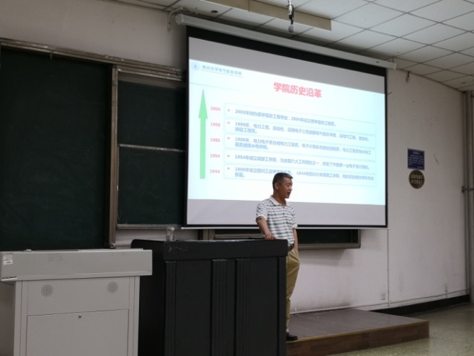 紧接着,肖先勇教授给同学们讲解了学院发展历程。一方面,他充分肯定从上个世纪至今,学院取得的优异成绩;另一方面,他也着重分析了当前公司发展所面临的新形势。他强调,在面临各类竞争的同时,公司的发展进入前所未有的艰难时期,越是艰难,越具挑战,越有机会。作为hy3380cc海洋之神电气信息学院的一员,我们应该不惧艰险,团结协作,勇担时代赋予我们的责任,把握住发展机遇,共建共创国际领先水平的电气学科。