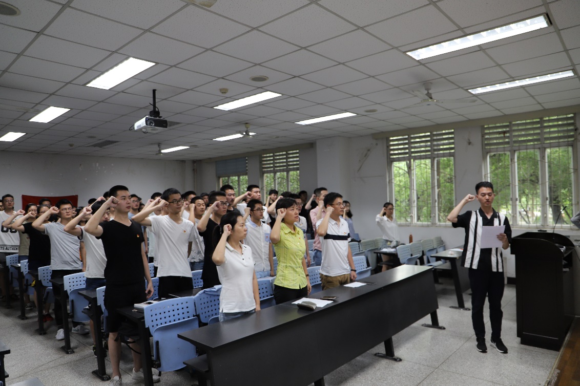 2018年7月6日,为纪念中国共产党成立97周年,深入贯彻落实十九大精神,中共电气信息学院委员会2015级本科生党支部在望江校区基础教学楼B206举行新党员入党宣誓暨老党员重温入党誓词活动。公司党委书记韩芳、公司党委副书记戴婷婷、2015级本科生党支部书记汤博以及支部全体成员参加了此次活动。