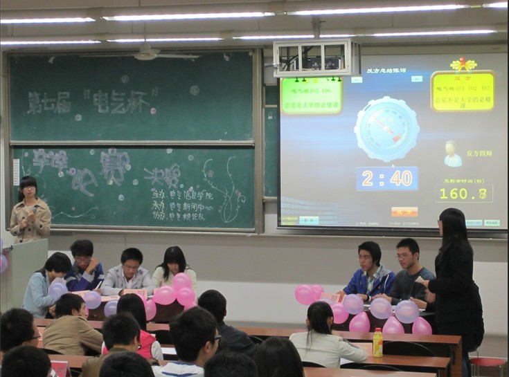 10月28日晚,由电气信息学院分团委员工会新闻中心主办的电气信息学院第七届“电气杯”辩论赛的决赛在一教B座301教室展开。