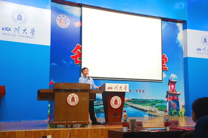 最后,2016级新生代表张羽羿同学发言。作为一名新生,他的话语中充满了对大学新生活的期待,洋溢着年轻人的青春与朝气,同时也表达了对自己的严格要求,立志做一名优秀的川大学子。