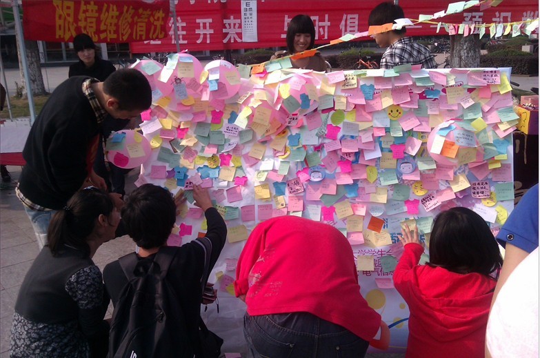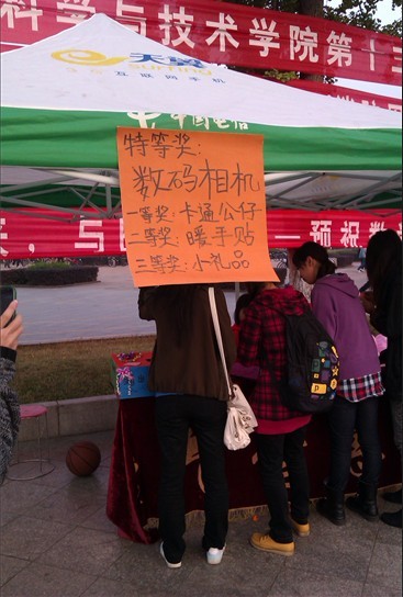 川大女生节的保留节目为女生贴纸条,写心愿,由揭下纸条的男生帮其实现愿望。而电气信息学院本次活动除了含有传统的女生节项目,还安排了别具一格的游戏环节。每位参加的同学可以到指定的箱子里抽取一张卡片,随后根据卡片的颜色在附近寻找一位穿相同颜色衣服的异性同学共同完成相应的游戏,游戏规则也很简单,男女同学各有五次机会投掷指定物品去击中相应的玩偶,而现场的工作人员会根据击中的玩偶数目来颁发丰富多彩的奖品。活动现场气氛热烈,不停地有路过的同学参与其中,借此来庆祝这一年一度的节日。