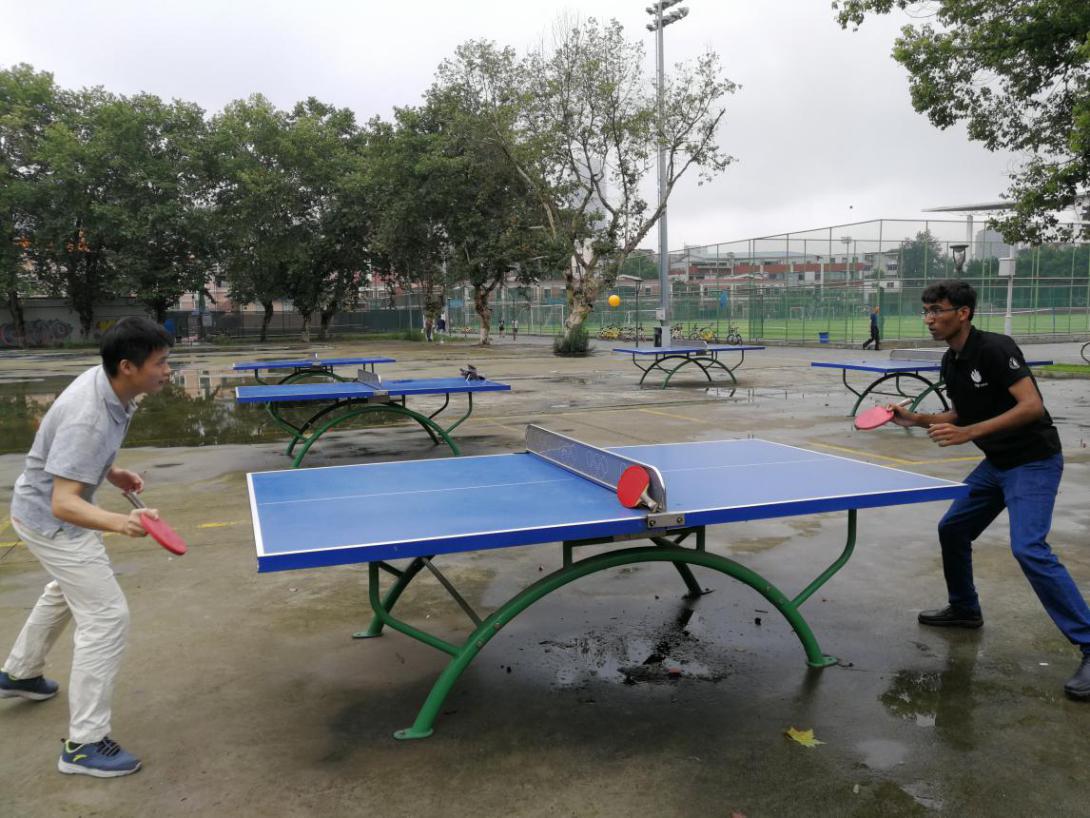 由于来自巴基斯坦的六位交流生谈到他们对中国国球乒乓球十分感兴趣,公司员工便邀请他们进行一场乒乓球交流比赛,在体育锻炼的同时,促进中外文化的交流。