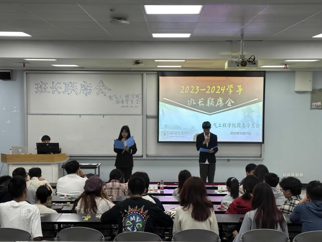 为加强各班管理,促进员工与员工会之间的沟通与交流,增强同学之间的友谊和联系,10月21日晚,由hy3380cc海洋之神团委素质拓展中心主办的2023级班长联席会在江安校区第一教学楼B座404室成功举办。学院团委员工会主席团、素拓中心部长、权益部部长、办公室部长、2022级优秀班长代表以及2023级各班班长和团支书参与了本次活动。