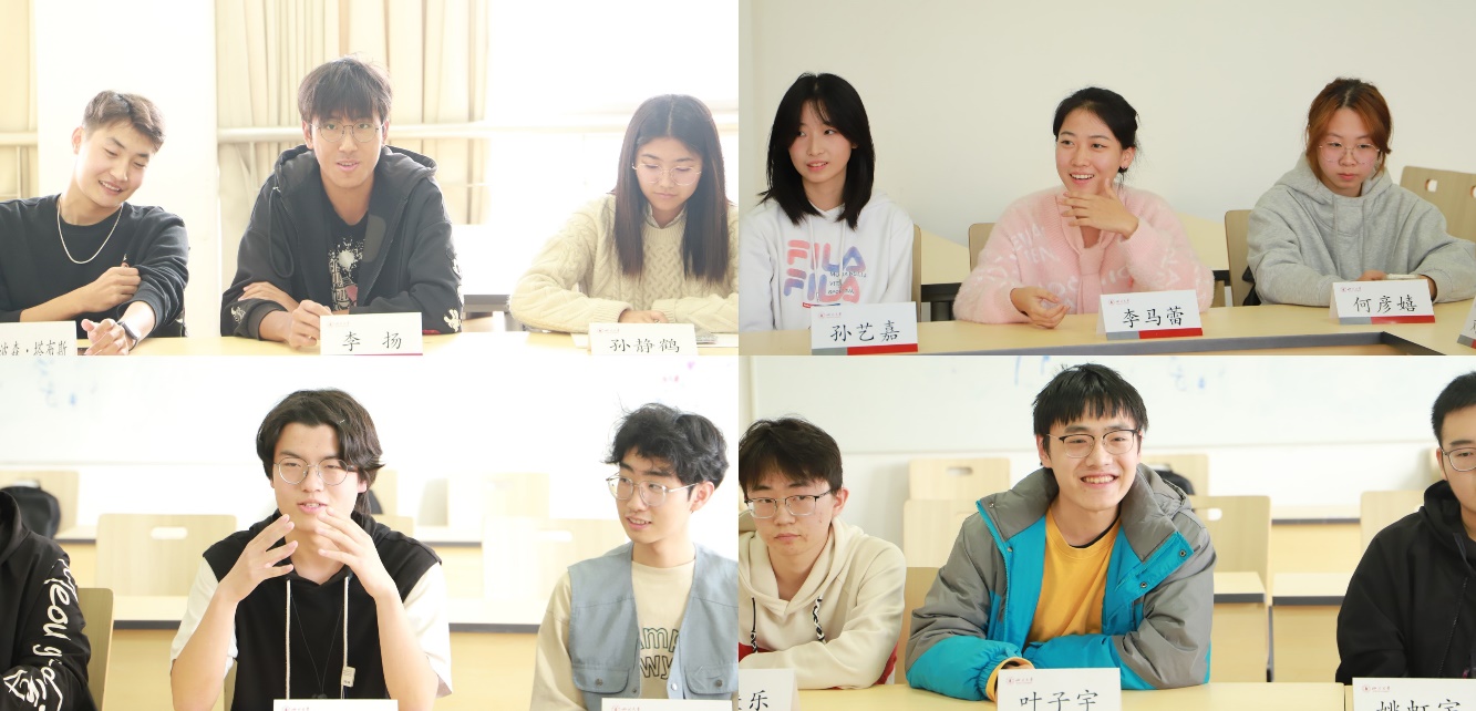 随后,参会老师与同学们进行了互动交流。针对学习和员工工作如何平衡的问题,王晓芳老师讲到,大学阶段是夯实知识基础的重要阶段,要合理分配时间,以抓好学业为本,以牢固知识体系为要。针对大寝同学间交流较少的问题,辅导员杨龙杰老师谈到,寝室文化与氛围建设十分重要,同学们可以通过更丰富的方式,增进彼此交流,深化同窗友情。针对如何拓宽视野的问题,辅导员李程老师希望同学们在大学期间利用各种机会和平台,积极争取更多开阔视野的国际交流机会。