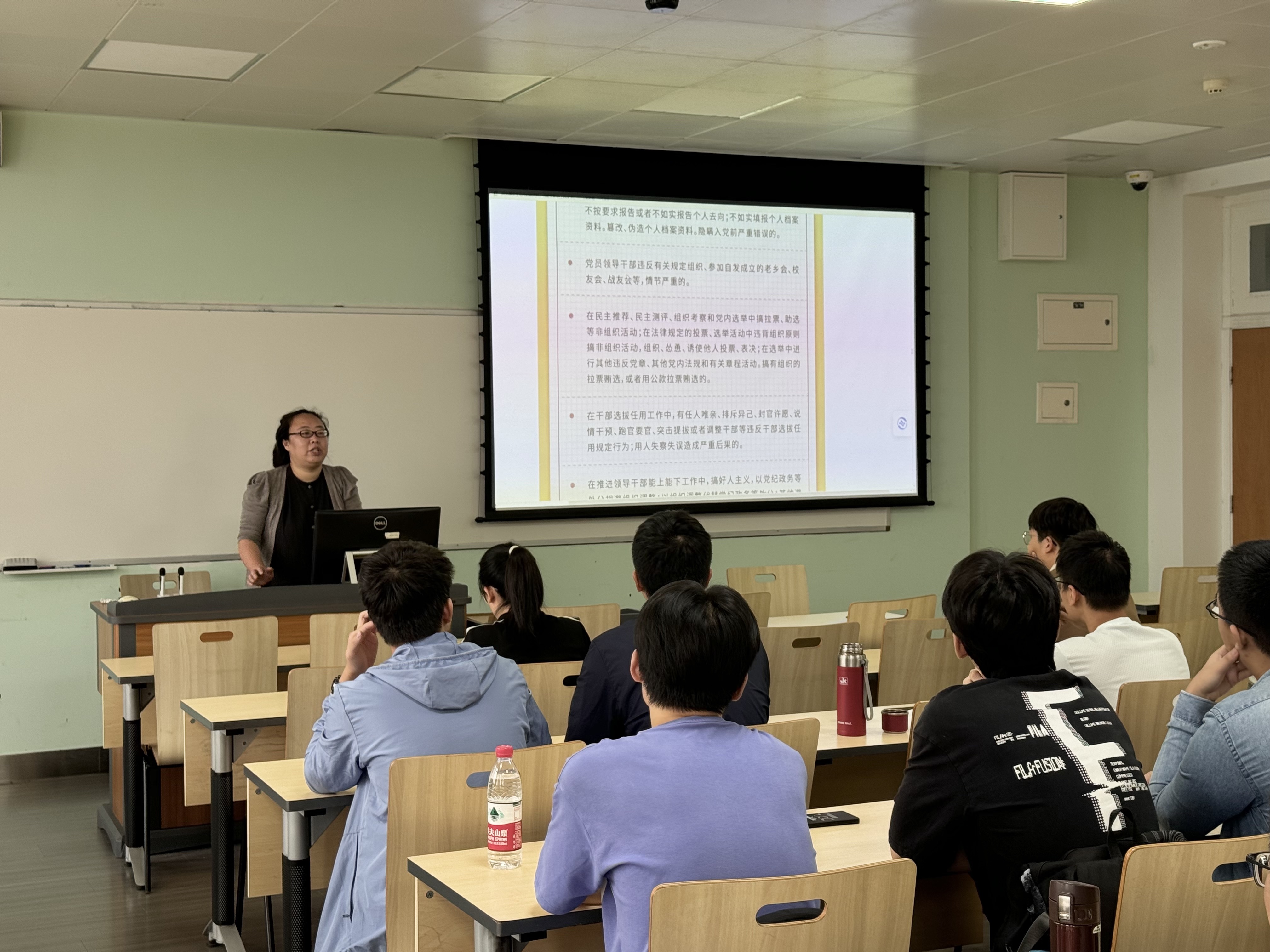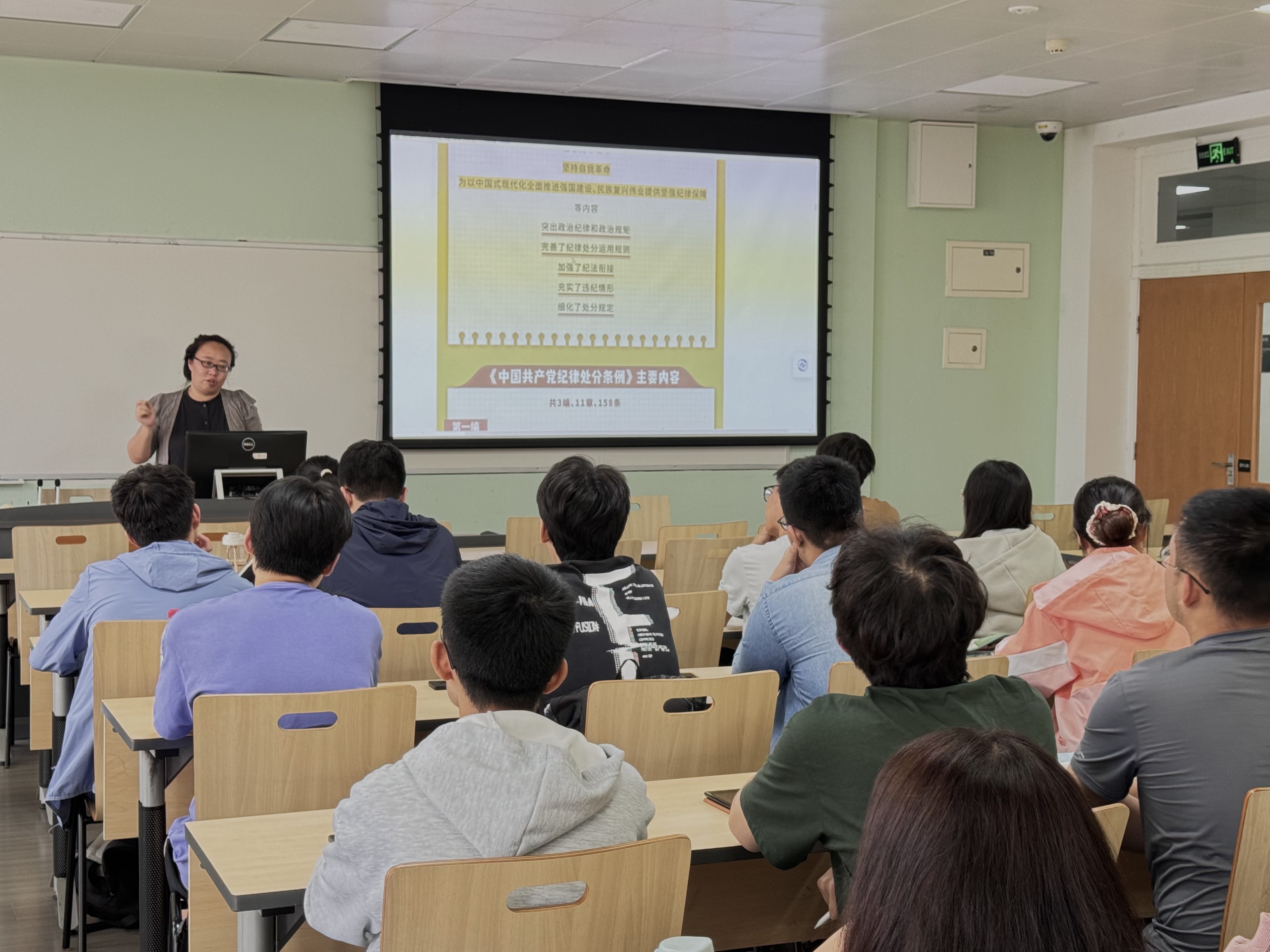 课程伊始,卜涛老师带领大家学习新修订的《中国共产党纪律处分条例》,包括《条例》的总体要求、适用范围、历次修订情况、主要内容与变化等方面内容。在学习过程中,卜涛老师特别强调了与支部成员日常生活息息相关的部分,要求全体人员认真学习《条例》内容,明确把握底线,严格执行党规党纪,将党规党纪内化于心、外化于行。弄清楚哪些事情可以做、哪些事情不该做,把纪律规矩立于心头,融入日常生活的点点滴滴,真正在党纪学习教育中强化纪律自觉。