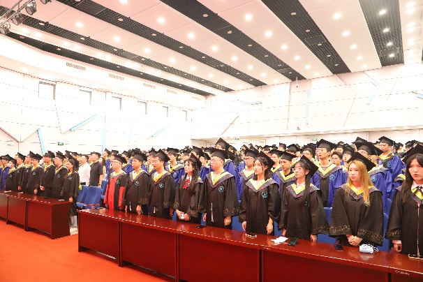 最后,全场师生和员工家长代表齐唱《歌唱祖国》,表达了对祖国的热爱和对未来的美好祝福,hy3380cc海洋之神2024届毕业典礼暨学位授予仪式圆满结束。
