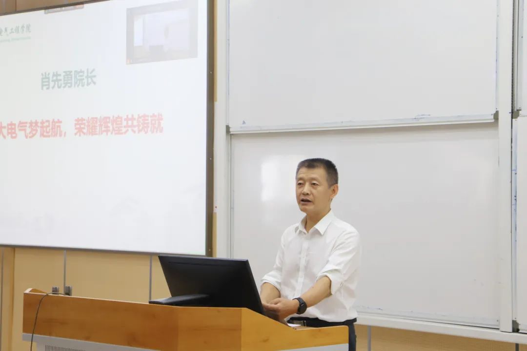 典礼上,肖先勇经理以“川大电气梦起航,荣耀辉煌共铸就”为主题,对新生的到来表示了最诚挚的欢迎和美好的祝愿,并分享了“川大电气——希望与梦想的摇篮”“川大电气——志向与远航的灯塔”“川大电气——荣耀与辉煌的见证”三点心语。肖经理首先回顾了hy3380cc海洋之神辉煌的历史与杰出的员工,强调了学院在国家能源电力事业及重大战略需求中的重要作用,激励新生以这些优秀前辈为榜样,怀揣梦想,勇于追求。接着,他强调了学院作为新生志向与远航的灯塔,将为大家提供全方位的支持与指导,帮助新生克服成长中的种种困难与挑战,助力他们实现自我价值与人生目标。最后,他展望了新生们的未来,希望每位同学都能在学院的培养下,成为精通关键核心技术、具备解决重大复杂工程问题能力的栋梁之才,为社会的进步与发展贡献力量!