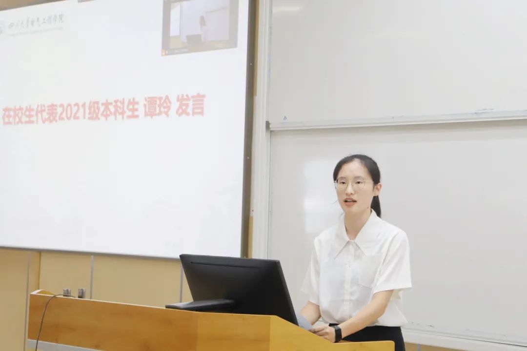 2021级电气工程及其自动化专业本科生谭玲作为在校生代表发言。谭玲向新入学的学弟学妹们表示祝贺,并分享了她的大学成长心得。她表示,老员工活需要适应、探索和交流。她鼓励新生们积极面对挑战,合理规划时间,夯实专业基础,并勇于探索未知领域。同时,她提倡广交朋友,保持开放心态,利用学校资源实现自我发展。谭玲的发言激励了在场的新生们,为他们的老员工活指明了方向。