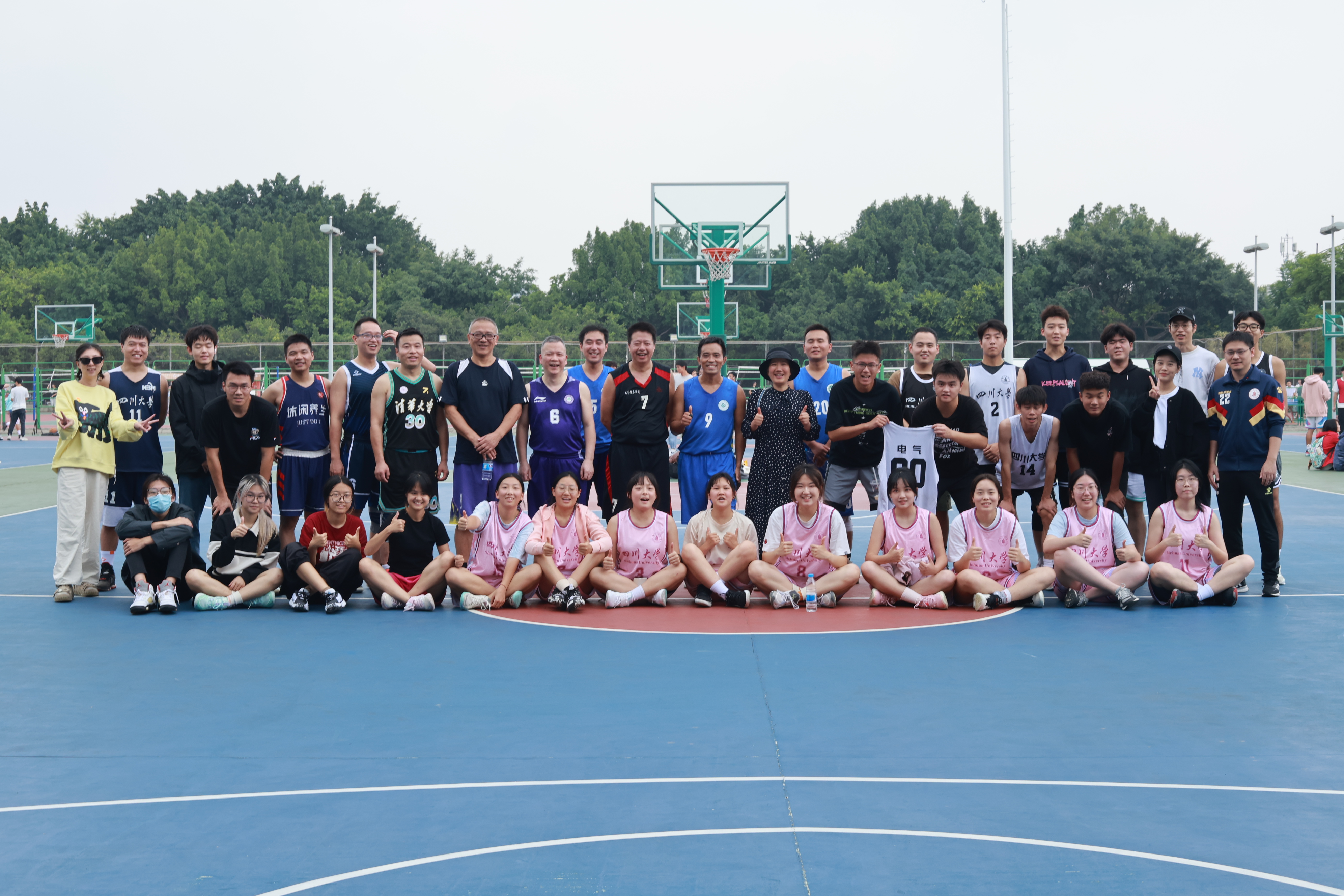 教师篮球队与男篮、女篮队员合影