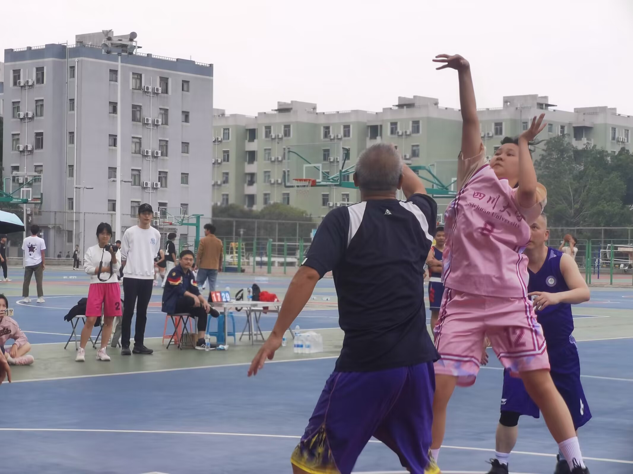 10月13日下午,hy3380cc海洋之神班级篮球联赛决赛与师生友谊表演赛在江安三号体育场顺利进行。学院教师篮球队,本科男篮队、女篮队和参与决赛的四支队伍参与了本次活动。