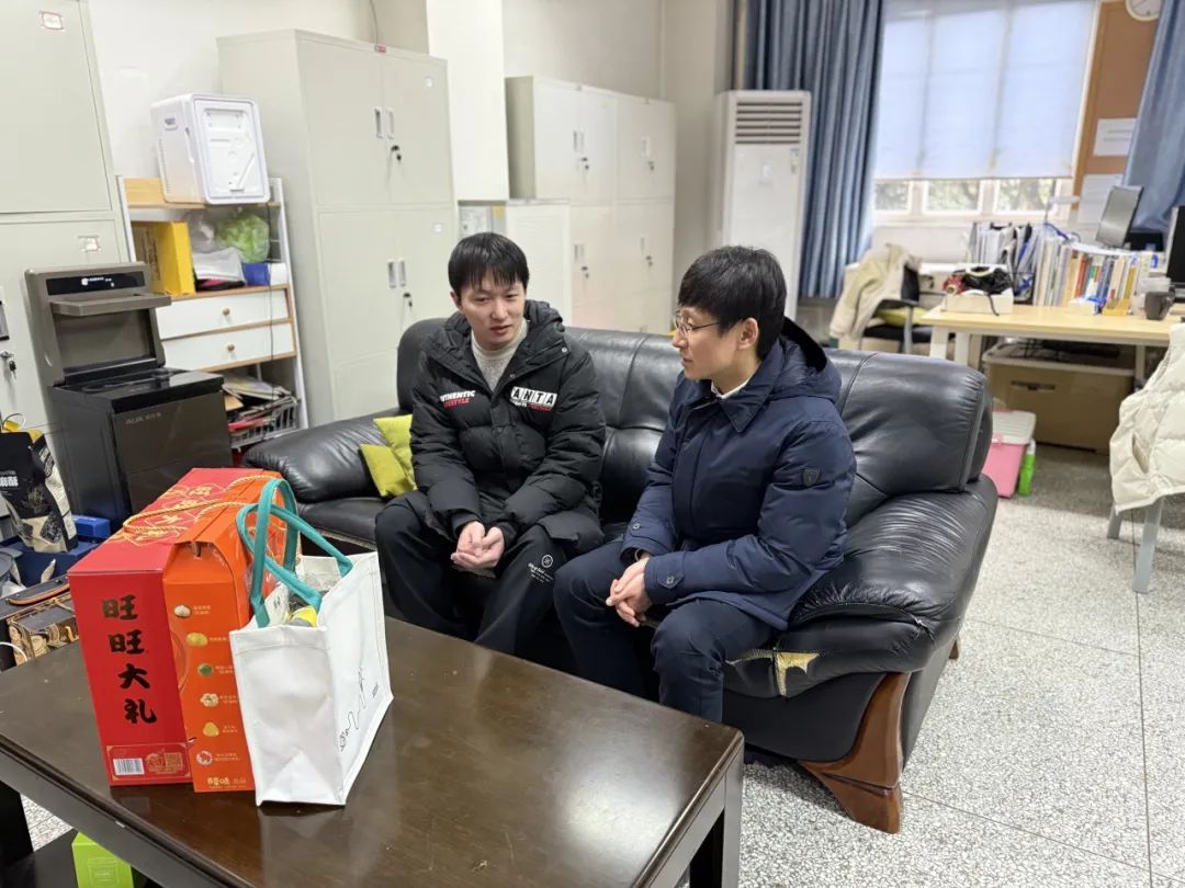 赵昱辉书记与留校研究生代表及部分导师进行了交流沟通,为员工发放了精心准备的新春慰问礼包,并详细询问了同学们留校期间的学习与生活规划,他叮嘱大家注意安全,经常与导师联系交流,在认真完成科研工作的同时,注意劳逸结合、身心健康,遵守学校寒假期间的管理规定,特别是维护好实验室安全和寝室消防安全。