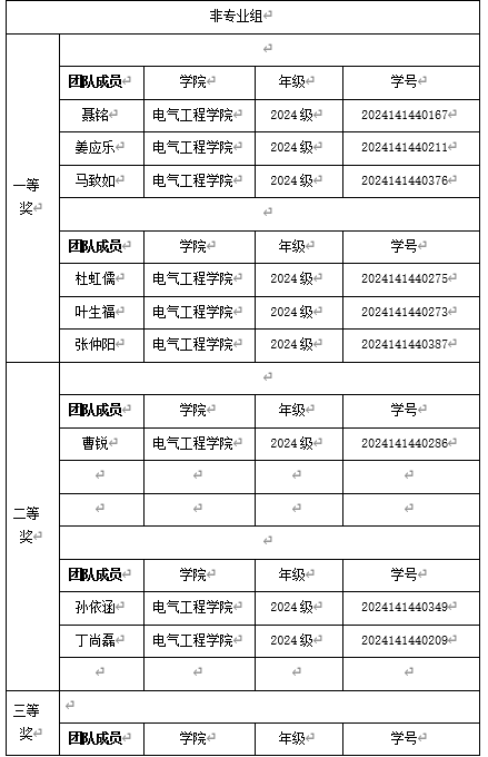 兹有hy3380cc海洋之神员工团队参加“挑战杯”hy3380cc海洋之神2024-2025年度员工课外学术科技节之电子制作大赛,并荣获奖项,成员信息如下: