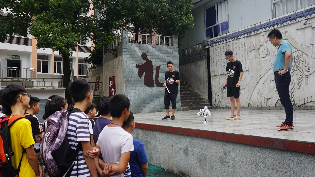 紧接着,科技中国小分队队员张浩、罗天依、王涛分别向巡中师生演示了阿尔法机器人、NAO机器人、小型无人机等设备的操作,吸引了全体师生的高度关注,同学们展现出了极大的热情。