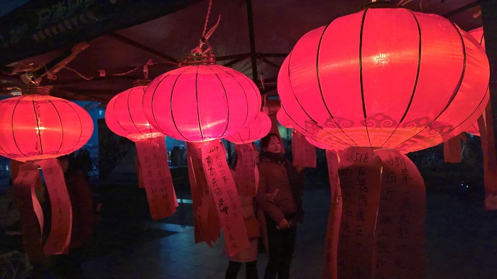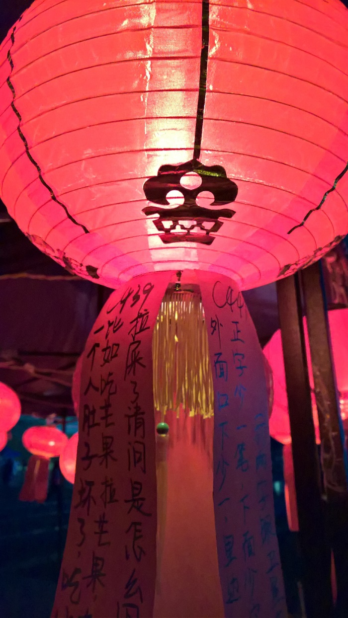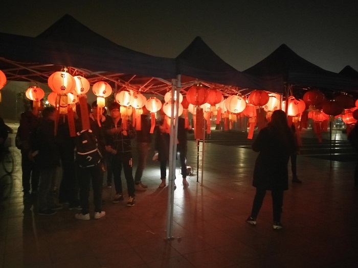 夜幕降临,灯笼逐个亮起。每个灯笼下都挂着多个灯谜,来往的同学都驻足思考灯谜答案。即使气温偏低,同学们的热情仍旧不减,核对答案处排起了长队。同时,主办方提供的奖品也大大提高了同学们的积极性。整个活动气氛活跃,同学们的参与度非常高。