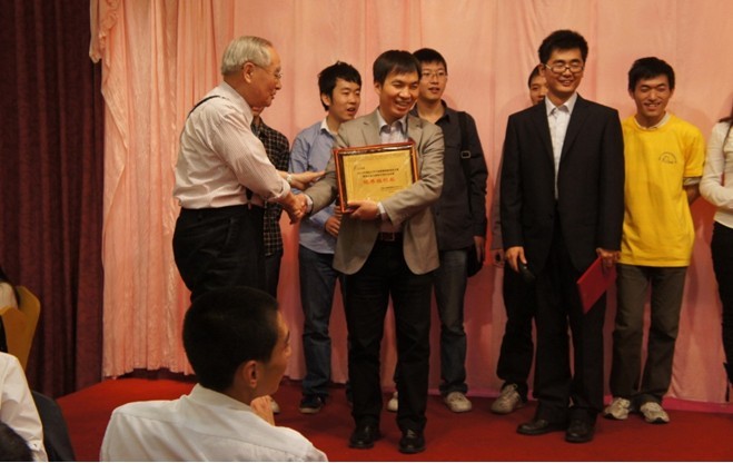 美新杯大赛全国总决赛结束宴会上工程院院士、中国工程物理研究院专委会徐志磊主任为公司颁发“优秀组织奖”