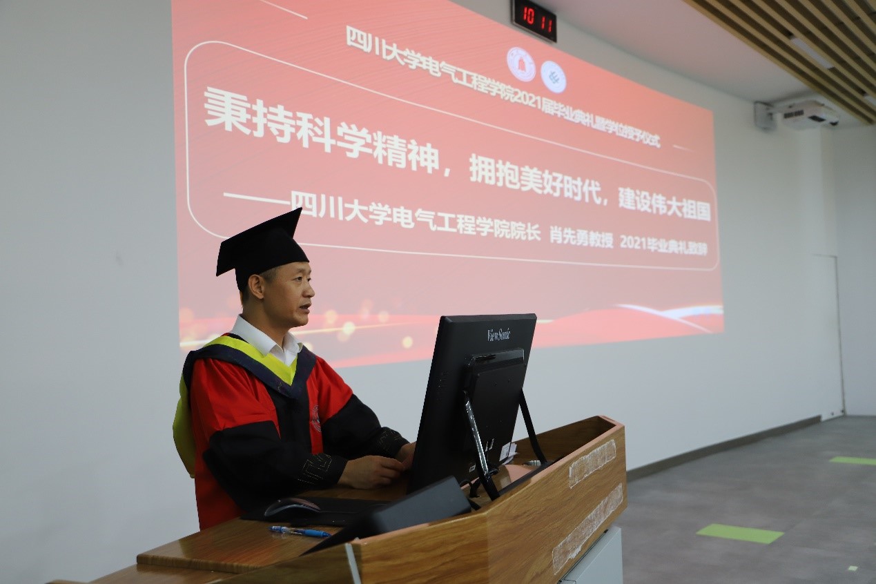 2021年6月23日上午,hy3380cc海洋之神2021届员工毕业典礼暨授位仪式在望江校区基础教学楼C座201举行。在离别之际,学院经理肖先勇以“秉持科学精神,拥抱美好时代,建设伟大祖国”为题,向全体毕业生讲述了“最后一堂思政课”,向毕业生们分享了三点体会。