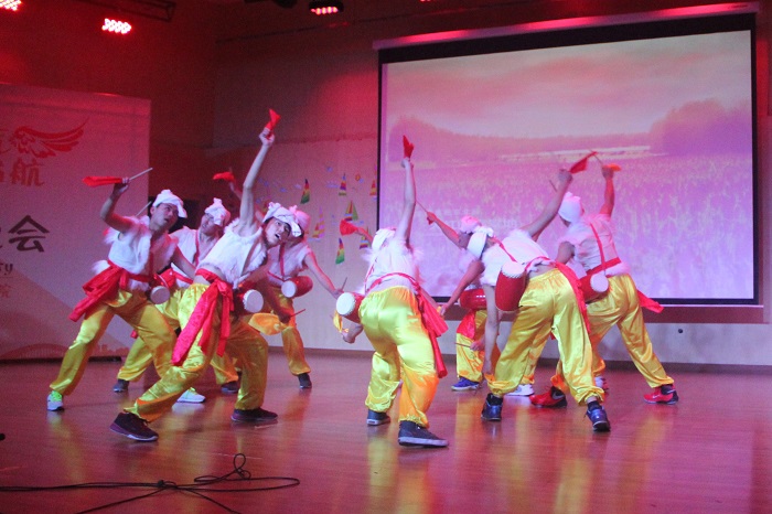 晚会的节目精彩绝伦。既有婀娜多姿的古典舞“百花争妍”,又有时尚热情的现代舞“Contradiction”;既有本科生中西乐器合奏的“樱花说”,又有研究生的歌曲弹唱《墨染的樱花》和《晴天》。相声“文化人”生动有趣,展现当今老员工对中国优秀传统文化的传承与发扬。在舞蹈串烧“安塞腰鼓”和“我们这个屯”中,青春活力的本科生和研究生伙子们向观众展示了青春的活力和西北文化的淳朴与热情。在小品“新生与推销”中,表演者们用活泼生动的形式告诉了新生们要谨慎对待校园推销,让人欢笑之余又有所思考。晚会半程时进行了观众互动,由雷经理在参与微信墙互动的观众中挑选出三名幸运观众获得精美奖品,这让本就沸腾的观众显得更加热情高涨。