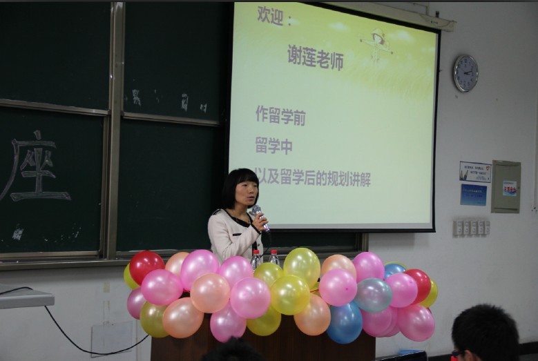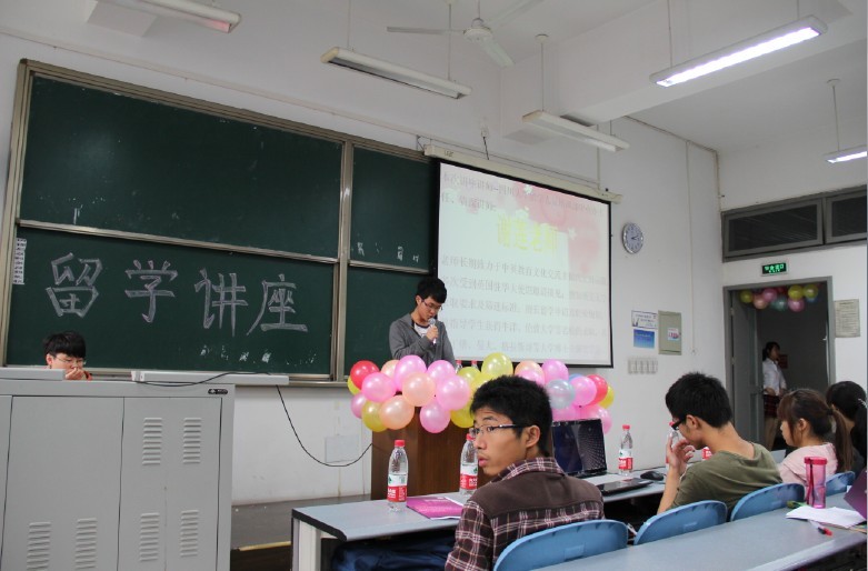 2011年11月6日下午三点整,由hy3380cc海洋之神制造学院、电子信息学院、电气信息学院三学院英语协会联合举办的以留学规划为主要内容的讲座江安校区综C105成功举行。本次讲座邀请了出国留学预备学院的谢莲学姐为同学们讲解了出国留学方面的相关问题及注意事项。