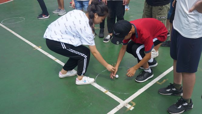 第一个比赛项目是“四人五足”。这要求四个人“心往一处想,劲往一处使”。在“一、二”声的呐喊中,同学们齐心协力,奋力前行。在激烈的角逐之后,二班以微弱的优势夺得冠军。第二个比赛项目游戏是“杯子跑”,这同样是一个合作游戏,同学们用各种不同的方式,在保证杯子中的水尽量不洒的同时,迅速接力跑完全程。最终一班凭借更出色的配合,摘取桂冠。最后的活动是乒乓球接力,全体员工和部分队员参与其中,比赛气氛逐渐推向高潮。参赛的同学们和队员们都全身心地投入到比赛当中,周围的同学们不时的鼓劲呐喊,场外一片欢声笑语。同学们将青春的光芒发挥到极致,将热情染满整个活动现场。