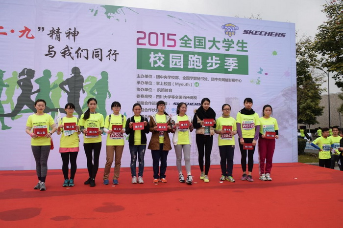 参赛选手身着绿色荧光T恤,在阴冷天气中构成川大校园的一道美丽风景线。运动员们以坚毅的目光望着前方,跑出自己的风采。半个多小时赛程之后,男女运动员们相继结束了征程,迎接属于他们的鲜花与掌声。无论结果如何,跑完全程就是一种胜利,运动员们理应接受属于他们的荣誉。此外,一系列的主题互动——集赞互动、集章互动、整点抽奖,更为本次活动增色不少,丰富的精美礼品等着同学们的参与。