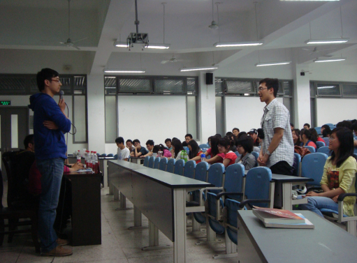 整场活动以主持人就同学们最关心的几个问题向嘉宾发问开始,一扫同学们以往对交流会刻板宣讲的印象,迅速调动了同学们的积极性,引导同学们迅速进入了主题。由蔡宇学姐开始,5位嘉宾分别讲述了自己在竞赛、保研、员工工作及就业等方面的经历和心得。现场气氛热烈,高潮迭起。