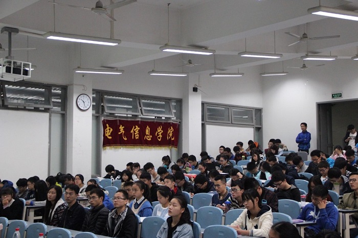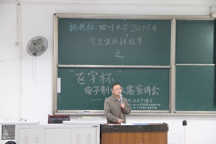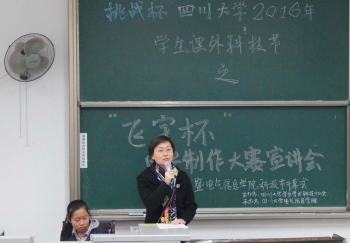 2016年11月6日上午10时,电气信息学院2016年科技节开幕式暨“飞宇杯”电子制作大赛宣讲会在江安校区综合教学楼C座105教室隆重举行。本次活动由“挑战杯”hy3380cc海洋之神2016员工科技节组委会等组织承办。电气信息公司党委副书记韩芳副教授、教导员李小根老师、团委副书记戴婷婷老师及汤博老师出席宣讲会。电气信息学院、电子信息学院及其他学院共两百余人参加宣讲会。