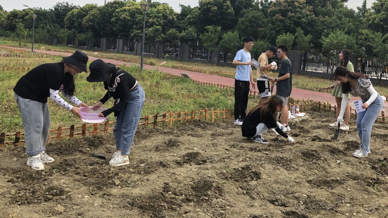 此次耕种活动实行“责任田”制度,农场土地由公司6个员工小组分别认领负责。两天里,同学们在组长带领下,自带浇水器具、锄地工具在开心农场松土除草、播种浇水。尽管天气炎热,但同学们参加劳动的热情依然高涨。