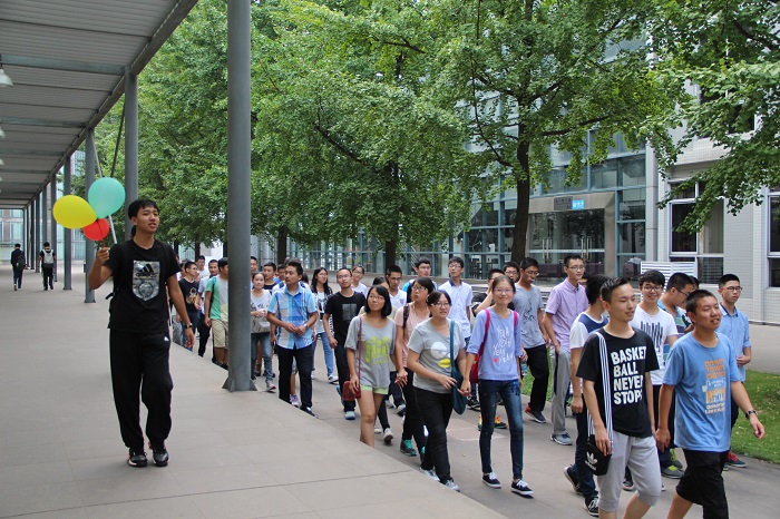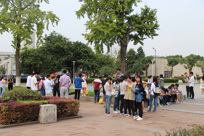 参加活动的新生们在2015级员工的带领下分为三组,从青春广场中央的国旗杆下出发,按照不同的路线来游赏江安校区美景。在愉悦的氛围中,大家领略了长桥、东门、明远湖畔、白石桥及不高山等具有江安校区独特风貌的景观,同时也对第一教学楼、综合楼、江安体育馆、图书馆、文科楼和第二基础实验楼等学习场所有了全方位的了解与领悟。