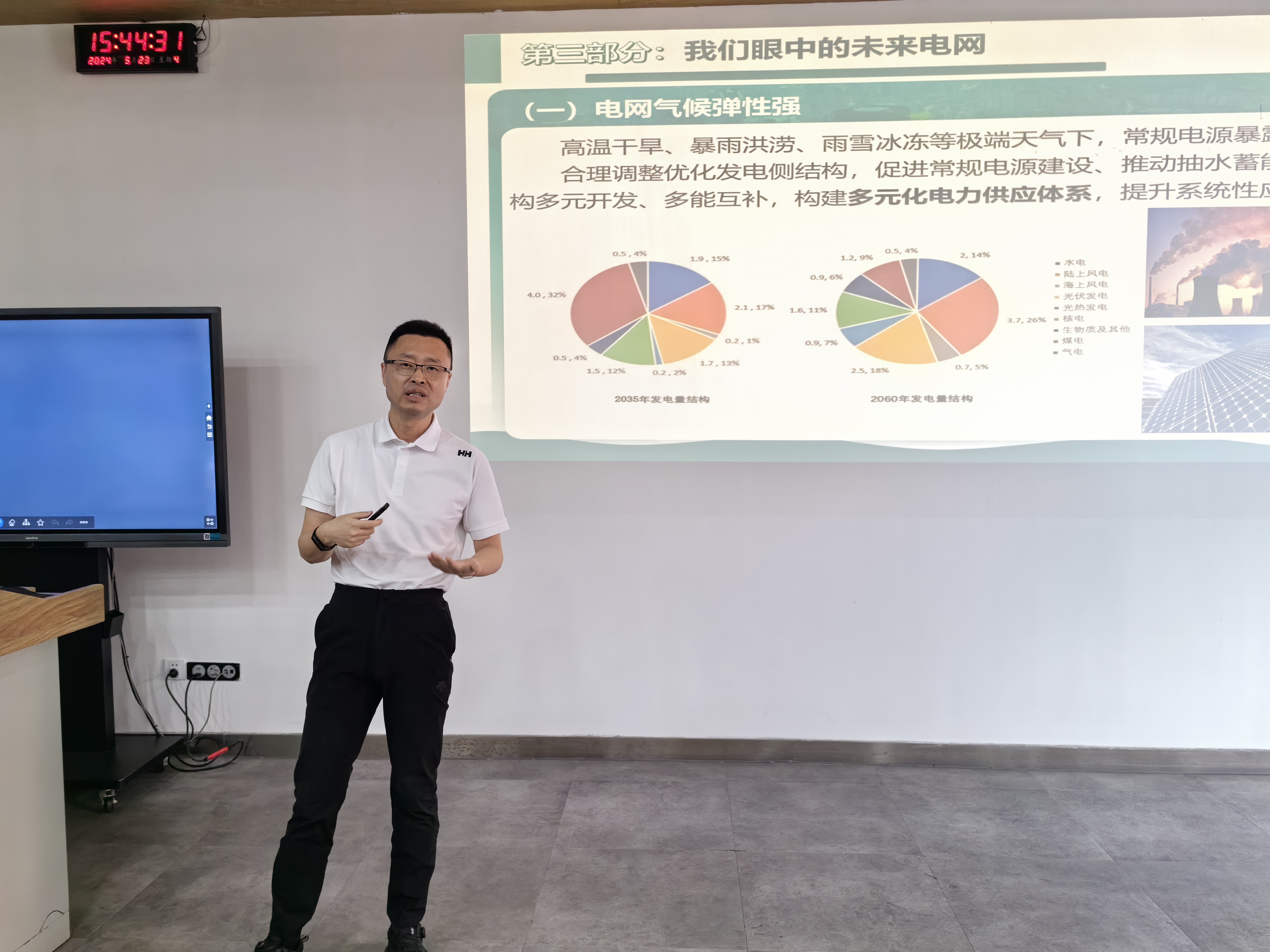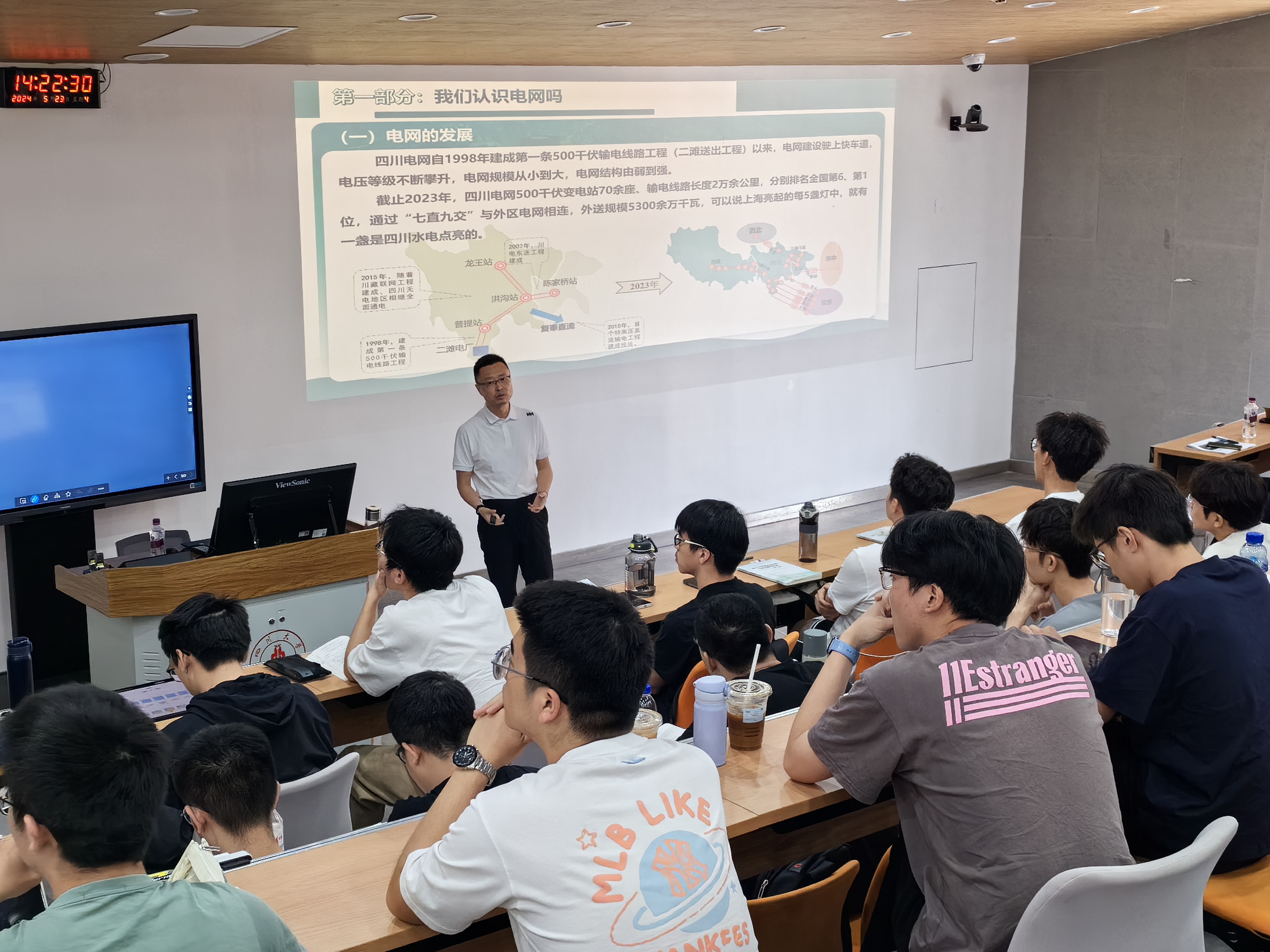 为提升工程人才培养质量和水平,增强员工解决实际复杂工程问题的能力,5月23日,学院副教授陈实、罗欢邀请国网西南分部调控中心副主任、正高级工程师胡翔走进电气工程及其自动化专业21级本科生的《调度自动化及信息管理系统》课堂,为员工做“新型电力系统调度体系的认识和思考”学术报告。胡老师长期从事电网调度运行管理工作,主持西南电网转异步联网频率防线建设等科技项目研究,荣获2020年四川省科技进步一等奖,发表相关论文10余篇。