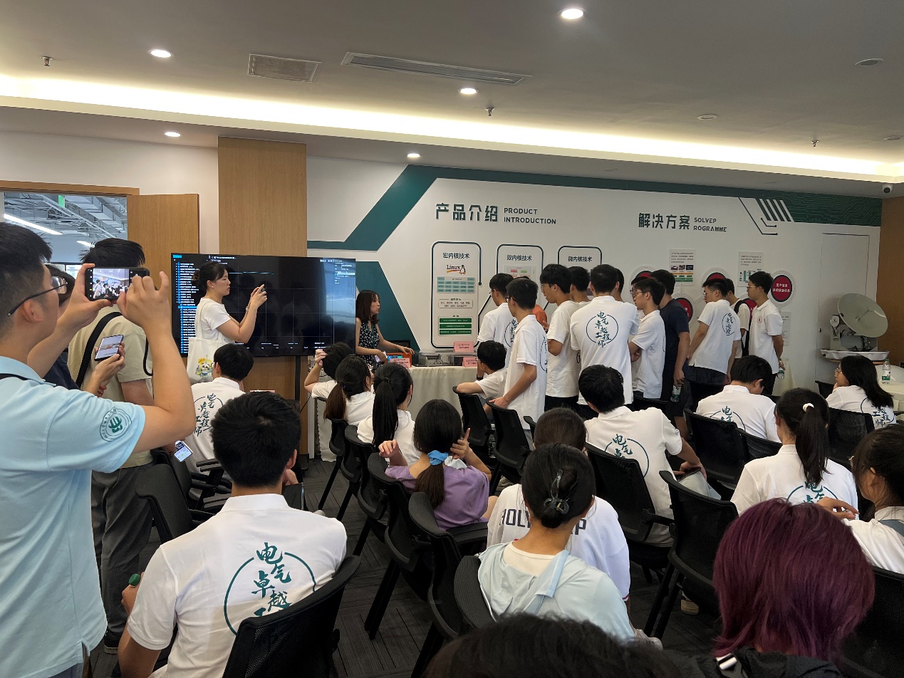 本次实践活动的第一站是蜂鸟智造。蜂鸟智造的专家带领同学们参观并详细介绍了公司的基本情况。同学们了解到,蜂鸟智造是一个目前市场上鲜有的集平台集概念验证、中试熟化、检验检测、科技投资、产业孵化、人才培育等功能于一体的第三方市场化运营全链条科技创新服务平台,也是全国首个全链条科技创新服务体系。蜂鸟智造在相关科技创新领域内极为先进、前沿的技术理念以及一套严谨成熟的产品研发流程路线。在与专家们的交流过程中,同学们踊跃提问,蜂鸟智造的专家也逐一耐心解答。