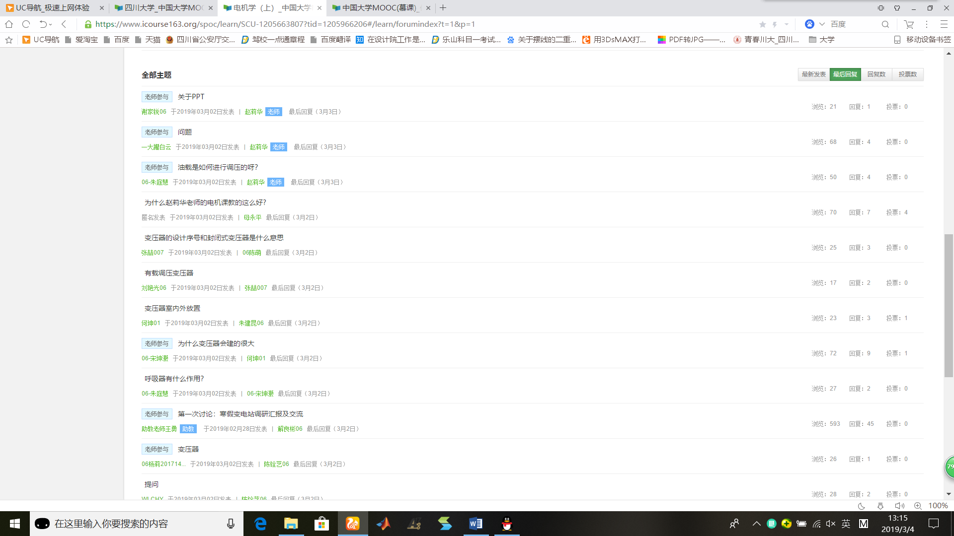 这学期伊始,赵莉华老师就在SPOC《电机学》课堂上为员工们开设了一次从未体验过的“线上讨论课”。同一时间,不同地点,同学们在自己的设备上打开SPOC课程网站,观看了由班上三位同学根据他们的变压器参观报告精心录制的PPT演讲视频,进一步拓展对变压器相关知识的认识。随后,大家在课程讨论区里就PPT的内容、变压器的结构设计、故障分析等问题开展了热烈而深入的讨论。
