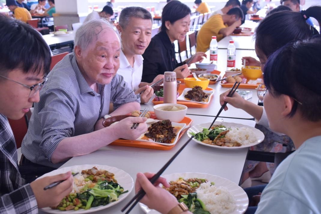 随后,雷院士与新生们在员工食堂共进午餐,与大家交流老员工活。同学们十分珍惜与雷院士交流的机会,纷纷与雷院士畅聊自己对大学的看法。对于新生提出的问题,他逐一耐心解答,现场其乐融融。
