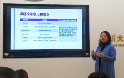 研讨活动首先由《专业发展趋势分析与英语文献检索阅读》课程组组长王渝红老师介绍了这门课程的改革情况。这门课程旨在帮助员工更深入地了解专业发展趋势,提高员工英语文献阅读能力,课程教学的关键在于“授人以渔”,通过分组讨论、课堂展示的方式让员工利用现代工具自行完成课程任务,学会自主学习专业知识。在思政教学环节,把社会主义核心价值观融入到课程的各个具体环节中,向员工传递爱国、诚信、友善等价值观念。