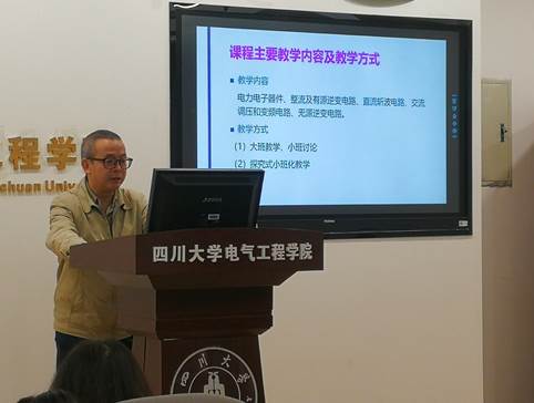 《电力电子技术》课程组组长张代润老师介绍了学院电力电子课程的改革情况。课程以知识传授、能力培养、素质塑造为教学目标,强调了要提高员工对课程基础知识的掌握程度和灵活应用能力,并能通过自主学习适应新时代发展趋势,发挥学习过程中的主观能动性。思政教学方面,在对员工的考核过程中强调对诚信观念的重视。